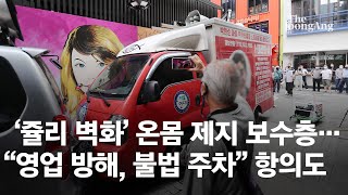 보수단체 ‘쥴리 벽화’ 온몸 제지에 난장판…"영업방해" 경찰 출동