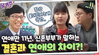 [#유퀴즈] 연애만 11년! 신혼부부가 말하는 '연애와 결혼의 차이'는? | 유 퀴즈 온 더 …